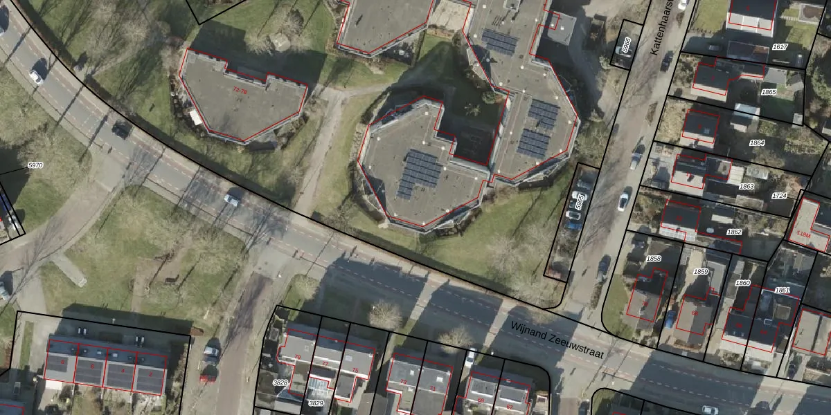Het perceel waarop Kattenhaarsweg 2-150 staat heeft een oppervlakte van 1,4 ha. Dit is een zeer groot perceel. De perceeloppervlakte wordt geregistreerd door het Kadaster. Gedetailleerde informatie over de maten van dit perceel kunt u vinden in het rapport Kadastrale kaart met maatvoering van Kattenhaarsweg 2-150.