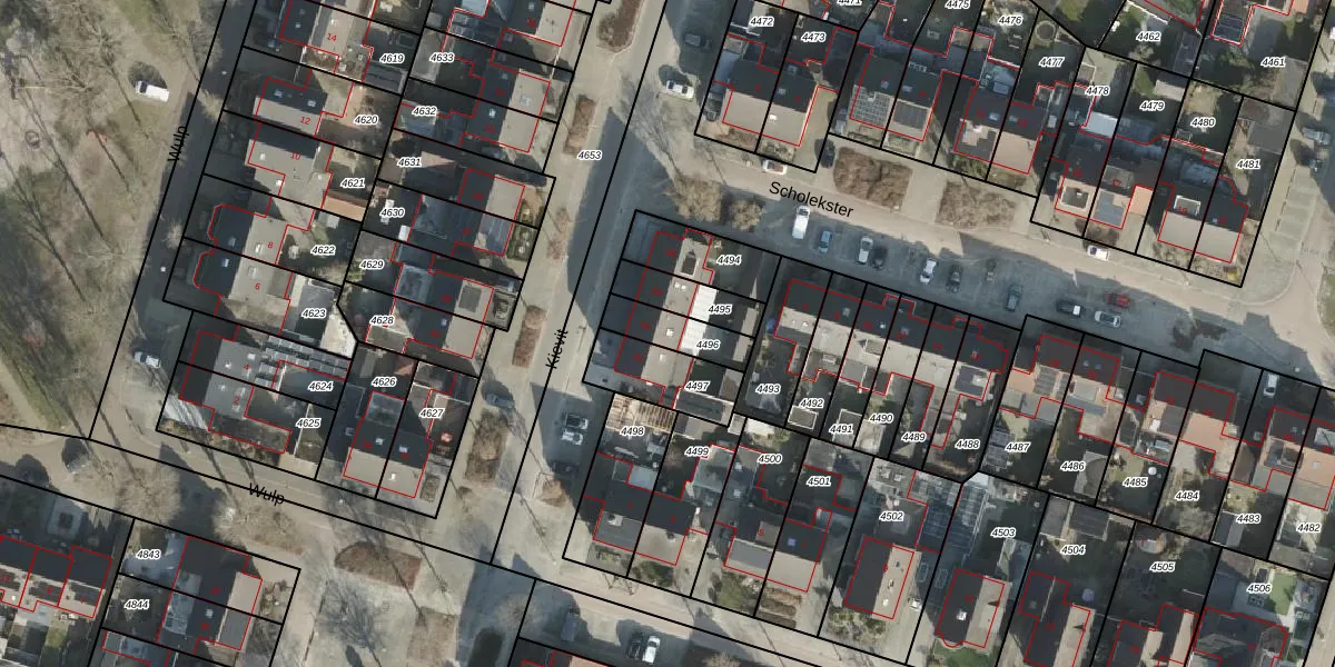 Gebruik de zoekbalk of klik op een perceel voor informatie over de adressen binnen dit perceel.