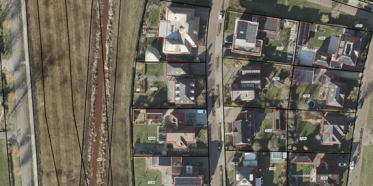 Het perceel waarop Kolenbrander 53 staat heeft een oppervlakte van 972 m². Dit is een groot perceel. De perceeloppervlakte wordt geregistreerd door het Kadaster. Gedetailleerde informatie over de maten van dit perceel kunt u vinden in het rapport Kadastrale kaart met maatvoering van Kolenbrander 53.