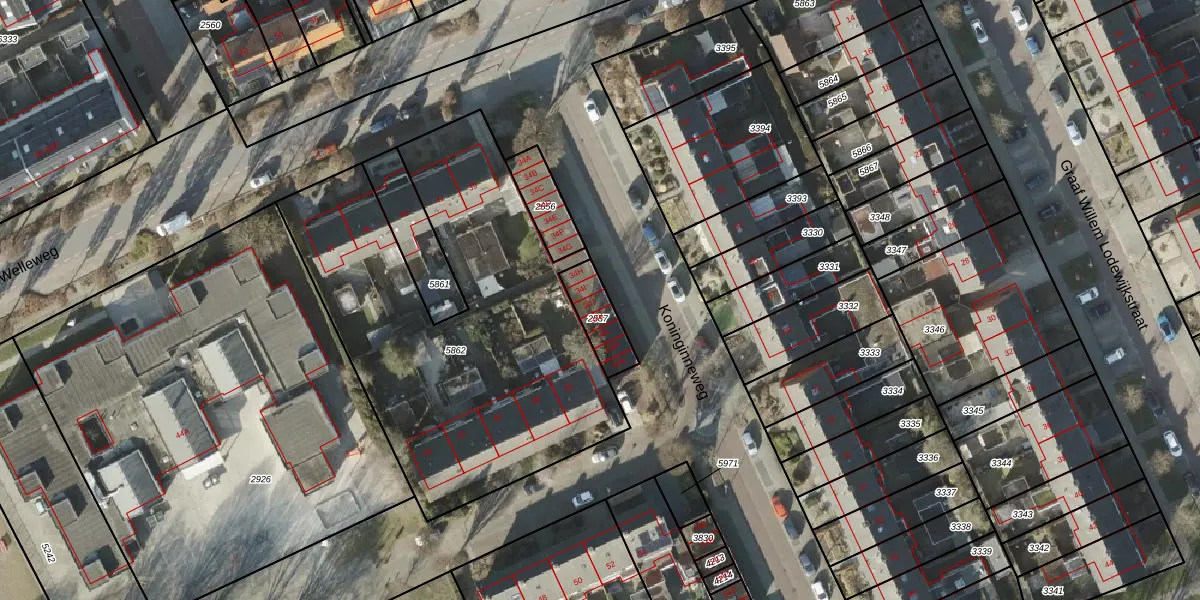Het perceel waarop Koninginneweg 34-J staat heeft een oppervlakte van 113 m². Dit is een middelgroot perceel. De perceeloppervlakte wordt geregistreerd door het Kadaster. Gedetailleerde informatie over de maten van dit perceel kunt u vinden in het rapport Kadastrale kaart met maatvoering van Koninginneweg 34-J.