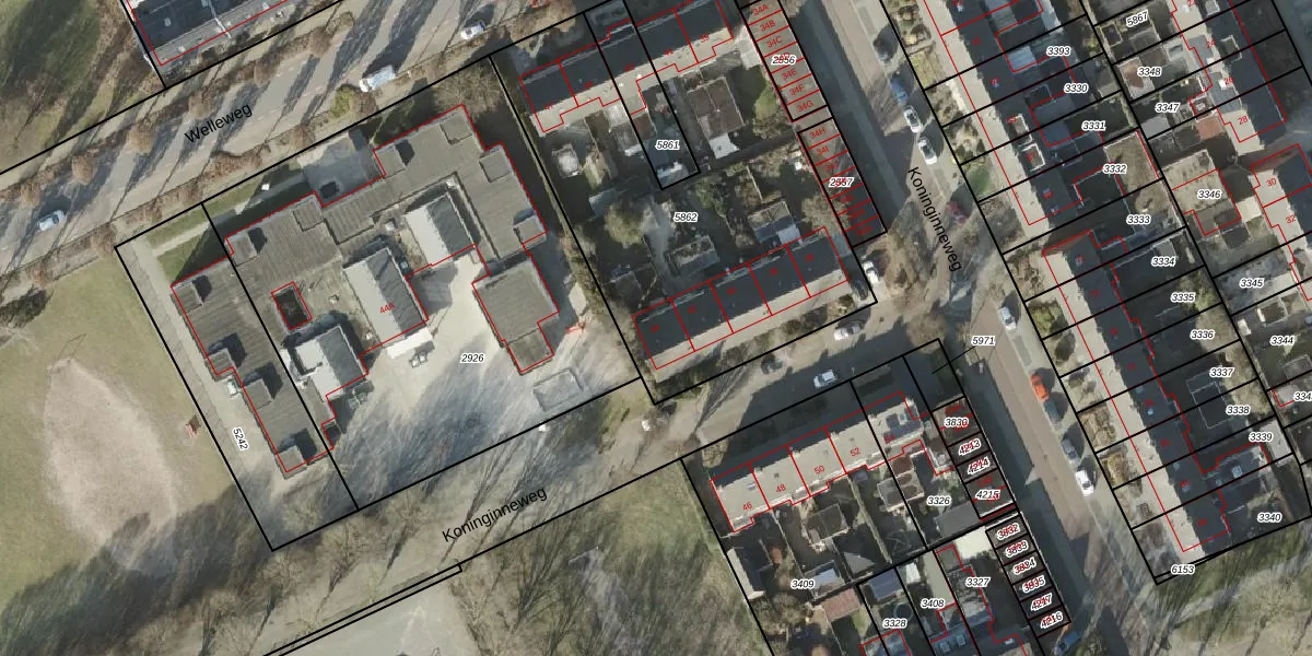 Het perceel waarop Koninginneweg 44 staat heeft een oppervlakte van 2017 m². Dit is een zeer groot perceel. De perceeloppervlakte wordt geregistreerd door het Kadaster. Gedetailleerde informatie over de maten van dit perceel kunt u vinden in het rapport Kadastrale kaart met maatvoering van Koninginneweg 44.