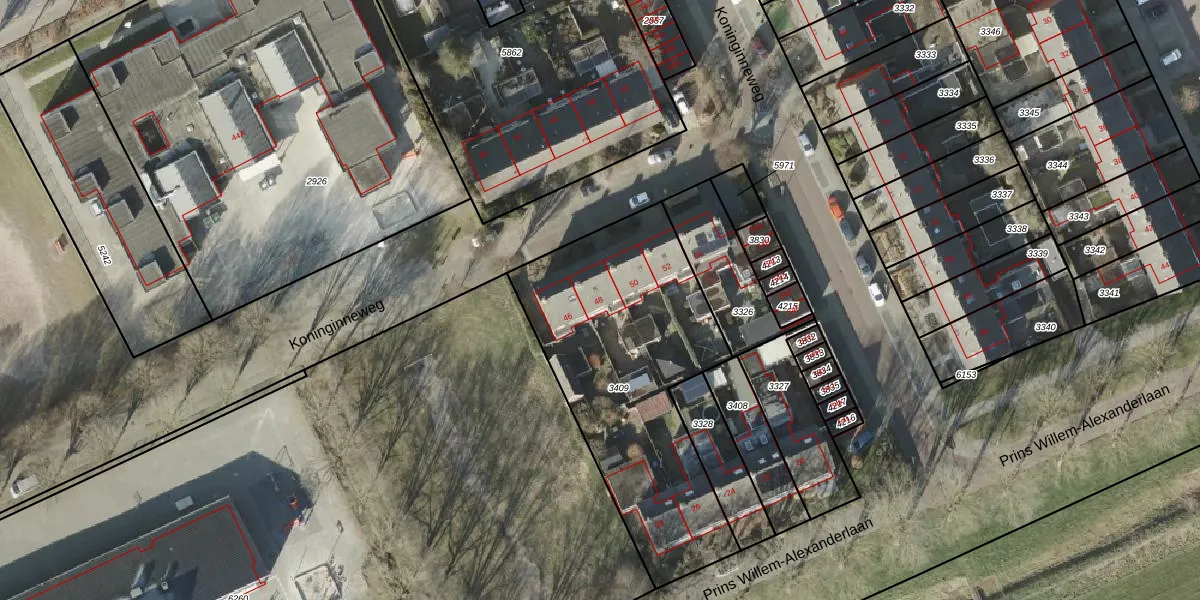 Het perceel waarop Koninginneweg 48 staat heeft een oppervlakte van 1267 m². Dit is een zeer groot perceel. De perceeloppervlakte wordt geregistreerd door het Kadaster. Gedetailleerde informatie over de maten van dit perceel kunt u vinden in het rapport Kadastrale kaart met maatvoering van Koninginneweg 48.