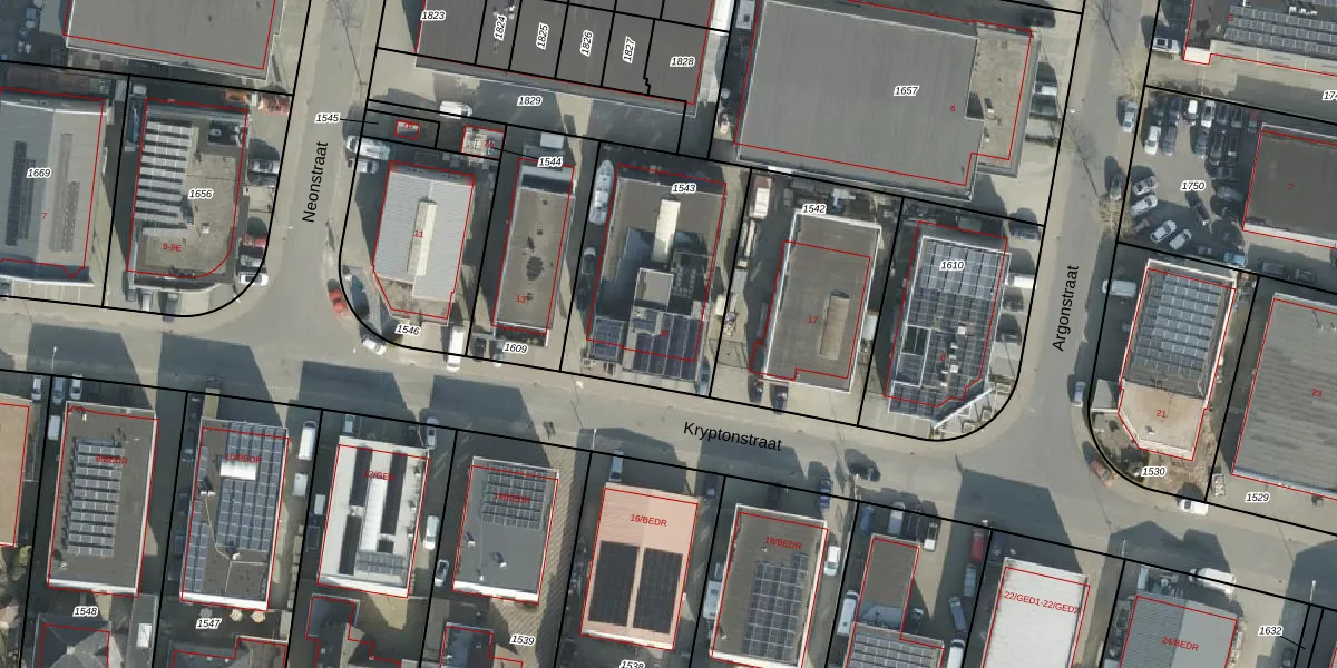 Gebruik de zoekbalk of klik op een perceel voor informatie over de adressen binnen dit perceel.