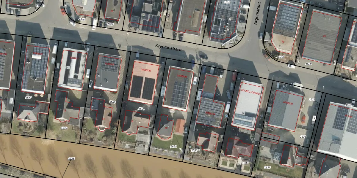 Het perceel waarop Kryptonstraat 18-BEDR staat heeft een oppervlakte van 1109 m². Dit is een zeer groot perceel. De perceeloppervlakte wordt geregistreerd door het Kadaster. Gedetailleerde informatie over de maten van dit perceel kunt u vinden in het rapport Kadastrale kaart met maatvoering van Kryptonstraat 18-BEDR.
