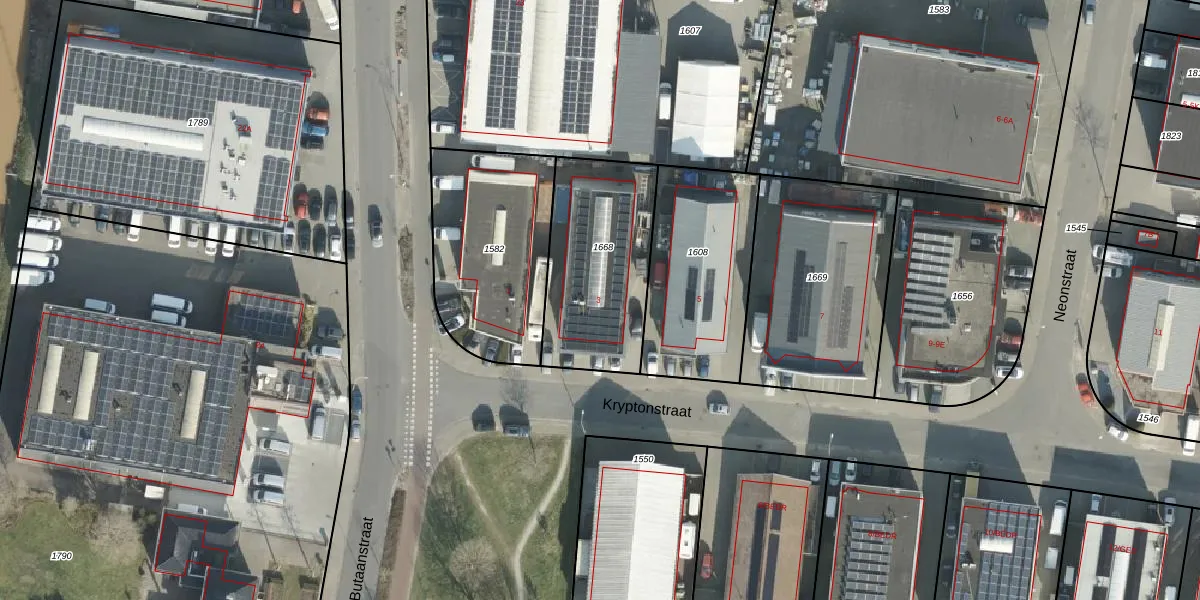 Het perceel waarop Kryptonstraat 3 staat heeft een oppervlakte van 590 m². Dit is een groot perceel. De perceeloppervlakte wordt geregistreerd door het Kadaster. Gedetailleerde informatie over de maten van dit perceel kunt u vinden in het rapport Kadastrale kaart met maatvoering van Kryptonstraat 3.
