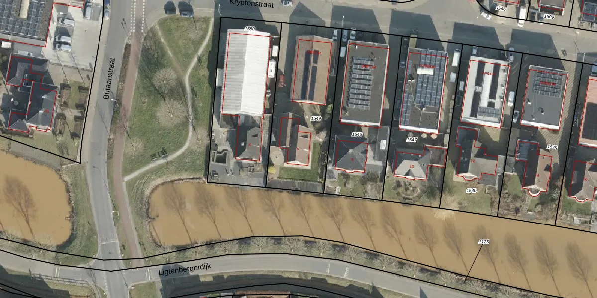Het perceel waarop Kryptonstraat 6 staat heeft een oppervlakte van 1109 m². Dit is een zeer groot perceel. De perceeloppervlakte wordt geregistreerd door het Kadaster. Gedetailleerde informatie over de maten van dit perceel kunt u vinden in het rapport Kadastrale kaart met maatvoering van Kryptonstraat 6.