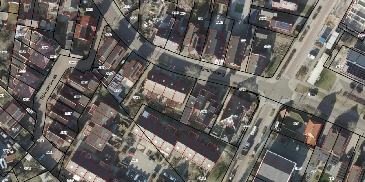 Het perceel waarop Lentfersweg 30 staat heeft een oppervlakte van 771 m². Dit is een groot perceel. De perceeloppervlakte wordt geregistreerd door het Kadaster. Gedetailleerde informatie over de maten van dit perceel kunt u vinden in het rapport Kadastrale kaart met maatvoering van Lentfersweg 30.