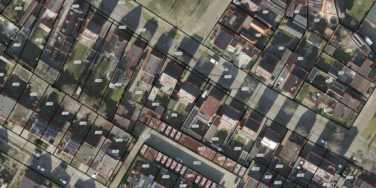 Gebruik de zoekbalk of klik op een perceel voor informatie over de adressen binnen dit perceel.