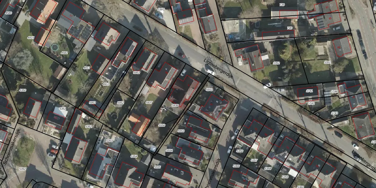Het perceel waarop Ligtenbergerdijk 9 staat heeft een oppervlakte van 549 m². Dit is een groot perceel. De perceeloppervlakte wordt geregistreerd door het Kadaster. Gedetailleerde informatie over de maten van dit perceel kunt u vinden in het rapport Kadastrale kaart met maatvoering van Ligtenbergerdijk 9.