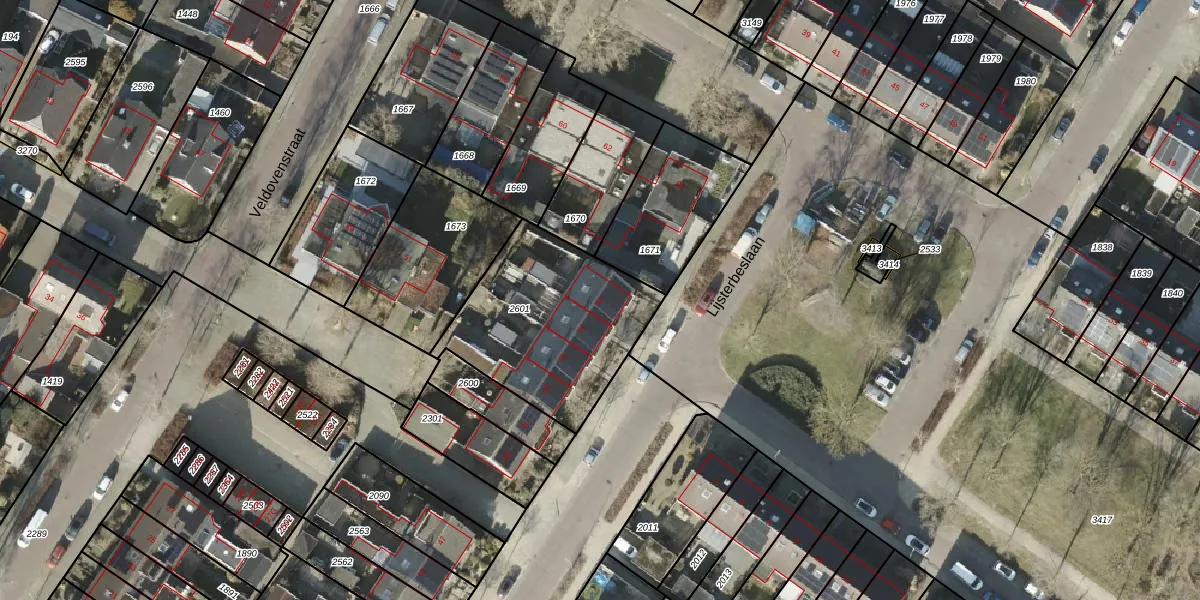 Het perceel waarop Lijsterbeslaan 59 staat heeft een oppervlakte van 721 m². Dit is een groot perceel. De perceeloppervlakte wordt geregistreerd door het Kadaster. Gedetailleerde informatie over de maten van dit perceel kunt u vinden in het rapport Kadastrale kaart met maatvoering van Lijsterbeslaan 59.