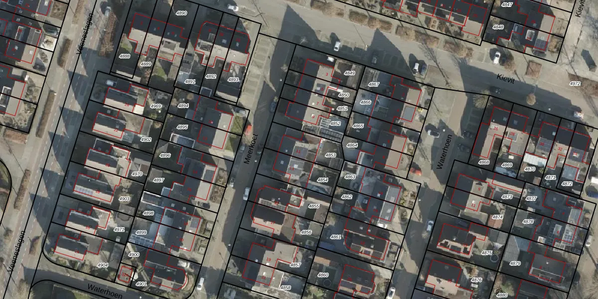 Gebruik de zoekbalk of klik op een perceel voor informatie over de adressen binnen dit perceel.