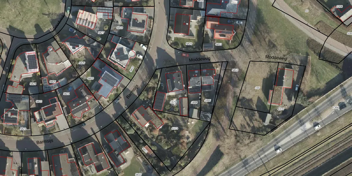 Gebruik de zoekbalk of klik op een perceel voor informatie over de adressen binnen dit perceel.