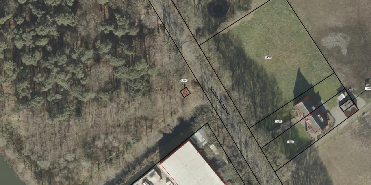 Het perceel waarop Molendijk Noord 67-A staat heeft een oppervlakte van 16 m². Dit is een klein perceel. De perceeloppervlakte wordt geregistreerd door het Kadaster. Gedetailleerde informatie over de maten van dit perceel kunt u vinden in het rapport Kadastrale kaart met maatvoering van Molendijk Noord 67-A.