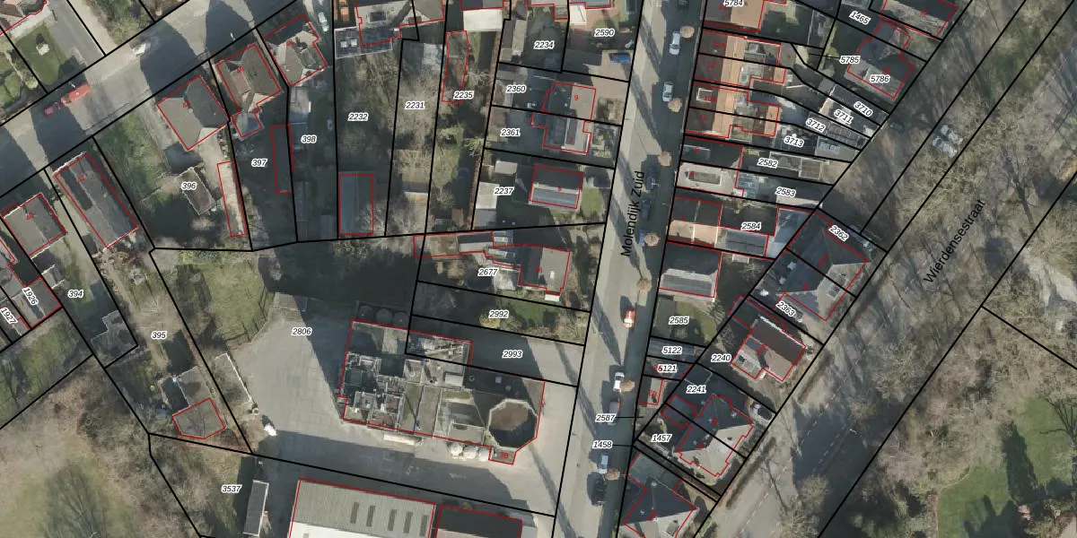 Gebruik de zoekbalk of klik op een perceel voor informatie over de adressen binnen dit perceel.