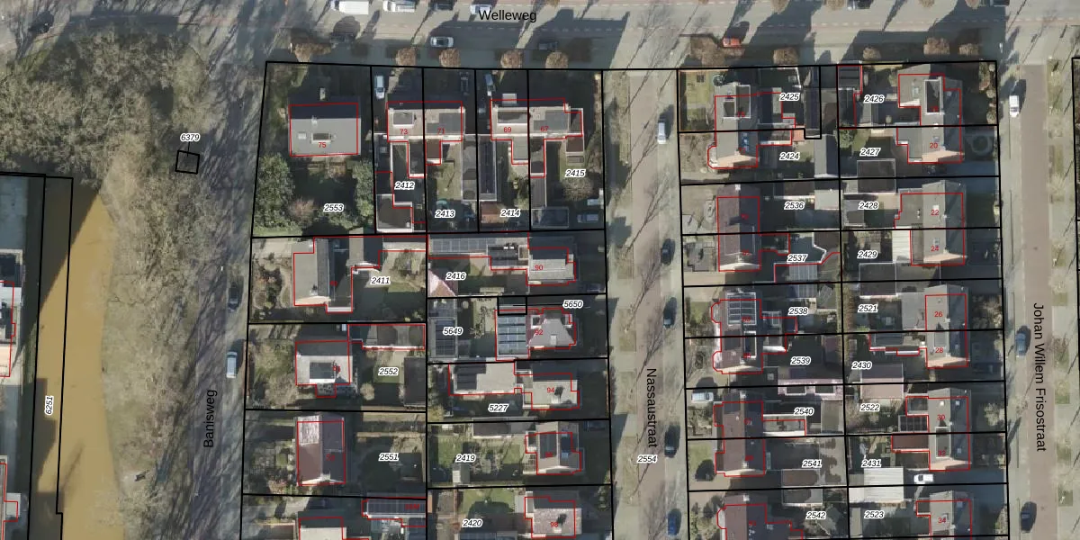 Nassaustraat 90 is gelegen op kadastraal perceel RSN01H2416. Deze kadastrale aanduiding is uniek en wordt gebruikt door het Kadaster om eigendomsrechten en andere zakelijke rechten vast te leggen. Het perceel maakt onderdeel uit van de kadastrale gemeente Rijssen.