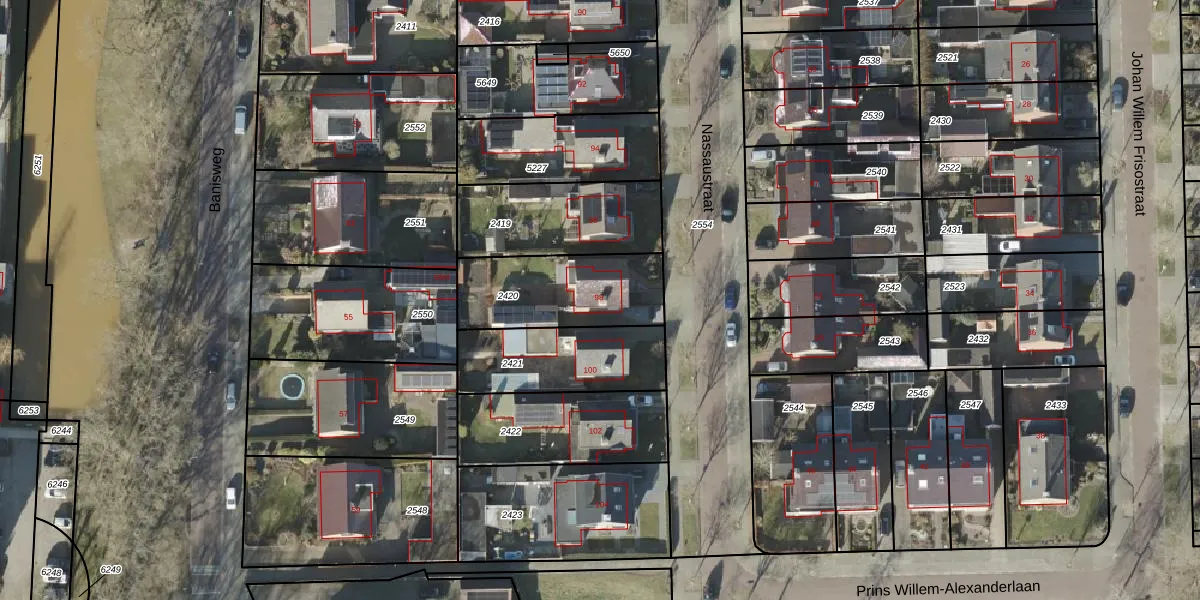 Gebruik de zoekbalk of klik op een perceel voor informatie over de adressen binnen dit perceel.