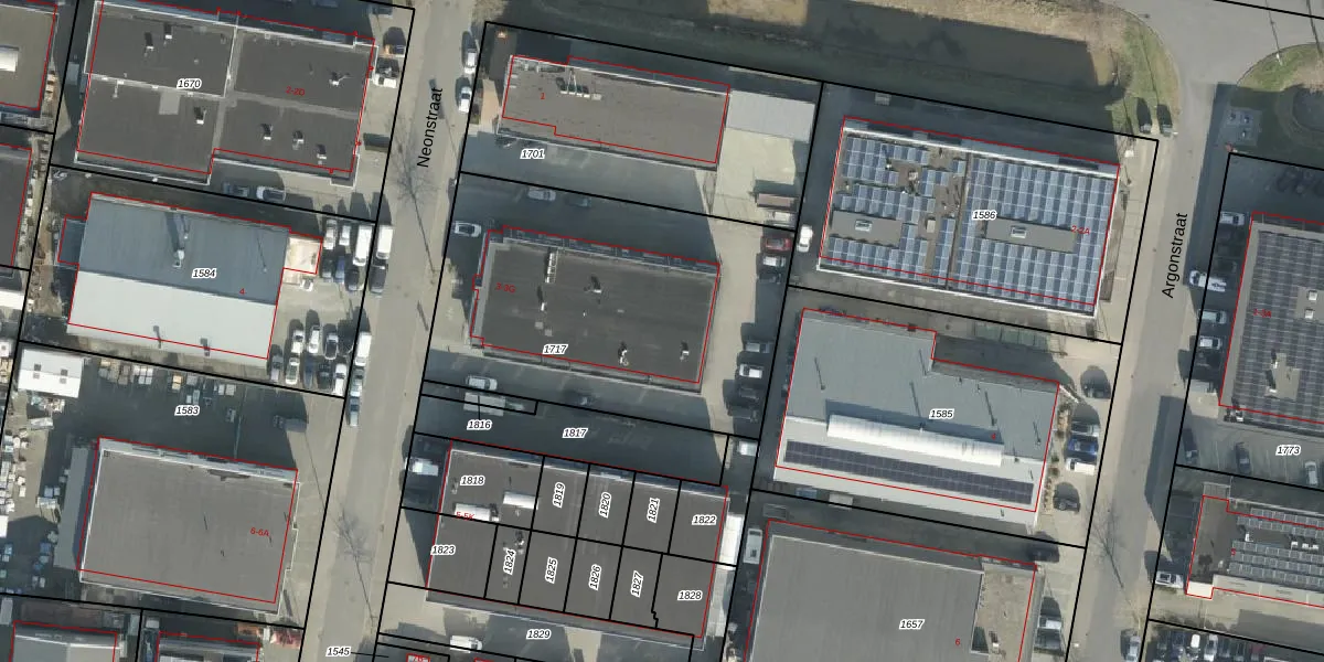 Het perceel waarop Neonstraat 3-G staat heeft een oppervlakte van 1653 m². Dit is een zeer groot perceel. De perceeloppervlakte wordt geregistreerd door het Kadaster. Gedetailleerde informatie over de maten van dit perceel kunt u vinden in het rapport Kadastrale kaart met maatvoering van Neonstraat 3-G.