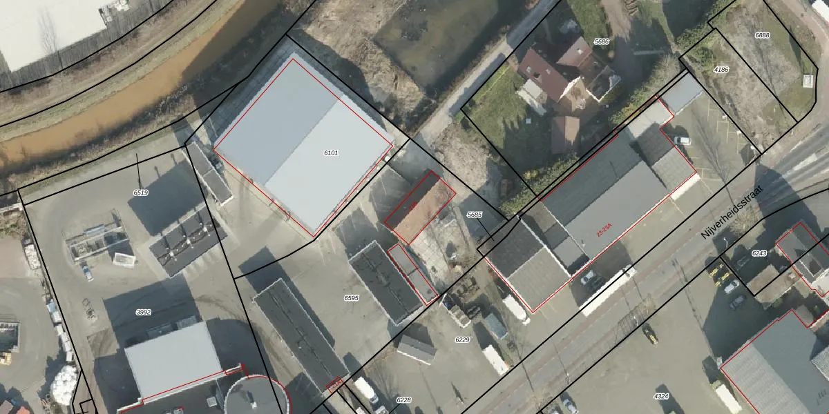 Het perceel waarop Nijverheidsstraat 21-B staat heeft een oppervlakte van 2095 m². Dit is een zeer groot perceel. De perceeloppervlakte wordt geregistreerd door het Kadaster. Gedetailleerde informatie over de maten van dit perceel kunt u vinden in het rapport Kadastrale kaart met maatvoering van Nijverheidsstraat 21-B.