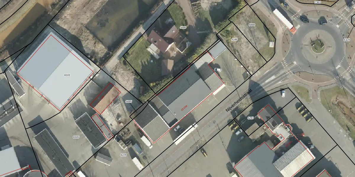 Het perceel waarop Nijverheidsstraat 23-A staat heeft een oppervlakte van 2902 m². Dit is een zeer groot perceel. De perceeloppervlakte wordt geregistreerd door het Kadaster. Gedetailleerde informatie over de maten van dit perceel kunt u vinden in het rapport Kadastrale kaart met maatvoering van Nijverheidsstraat 23-A.