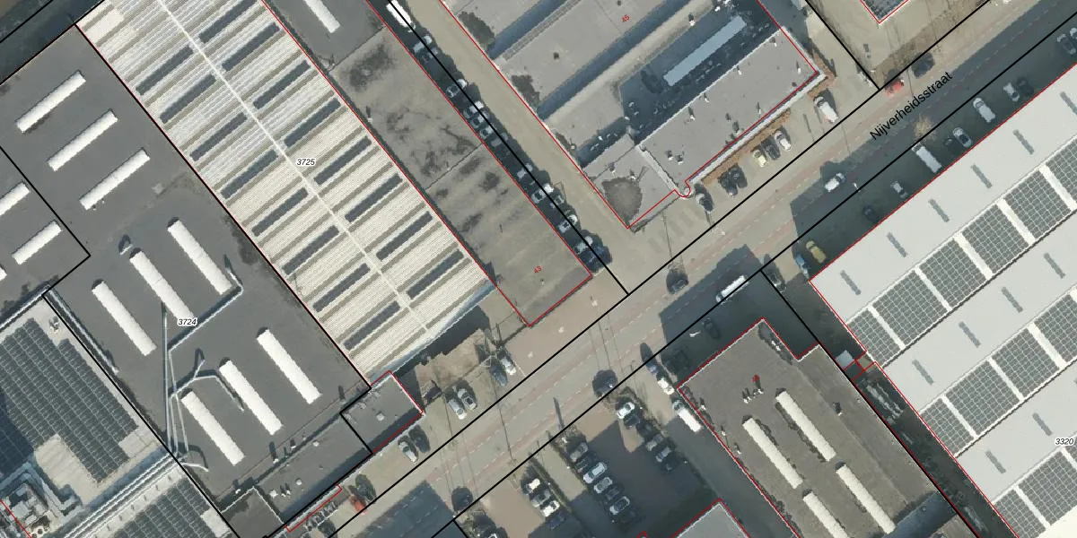 Het perceel waarop Nijverheidsstraat 43 staat heeft een oppervlakte van 1,0 ha. Dit is een zeer groot perceel. De perceeloppervlakte wordt geregistreerd door het Kadaster. Gedetailleerde informatie over de maten van dit perceel kunt u vinden in het rapport Kadastrale kaart met maatvoering van Nijverheidsstraat 43.