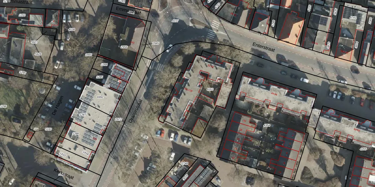 Het perceel waarop Oranjestraat 112 staat heeft een oppervlakte van 1127 m². Dit is een zeer groot perceel. De perceeloppervlakte wordt geregistreerd door het Kadaster. Gedetailleerde informatie over de maten van dit perceel kunt u vinden in het rapport Kadastrale kaart met maatvoering van Oranjestraat 112.