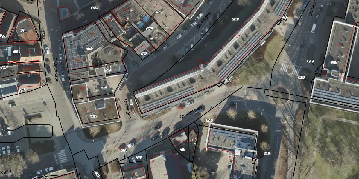 Het perceel waarop Oranjestraat 23 staat heeft een oppervlakte van 3245 m². Dit is een zeer groot perceel. De perceeloppervlakte wordt geregistreerd door het Kadaster. Gedetailleerde informatie over de maten van dit perceel kunt u vinden in het rapport Kadastrale kaart met maatvoering van Oranjestraat 23.