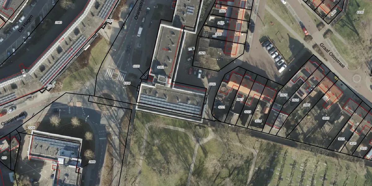 Het perceel waarop Oranjestraat 82-D staat heeft een oppervlakte van 1578 m². Dit is een zeer groot perceel. De perceeloppervlakte wordt geregistreerd door het Kadaster. Gedetailleerde informatie over de maten van dit perceel kunt u vinden in het rapport Kadastrale kaart met maatvoering van Oranjestraat 82-D.