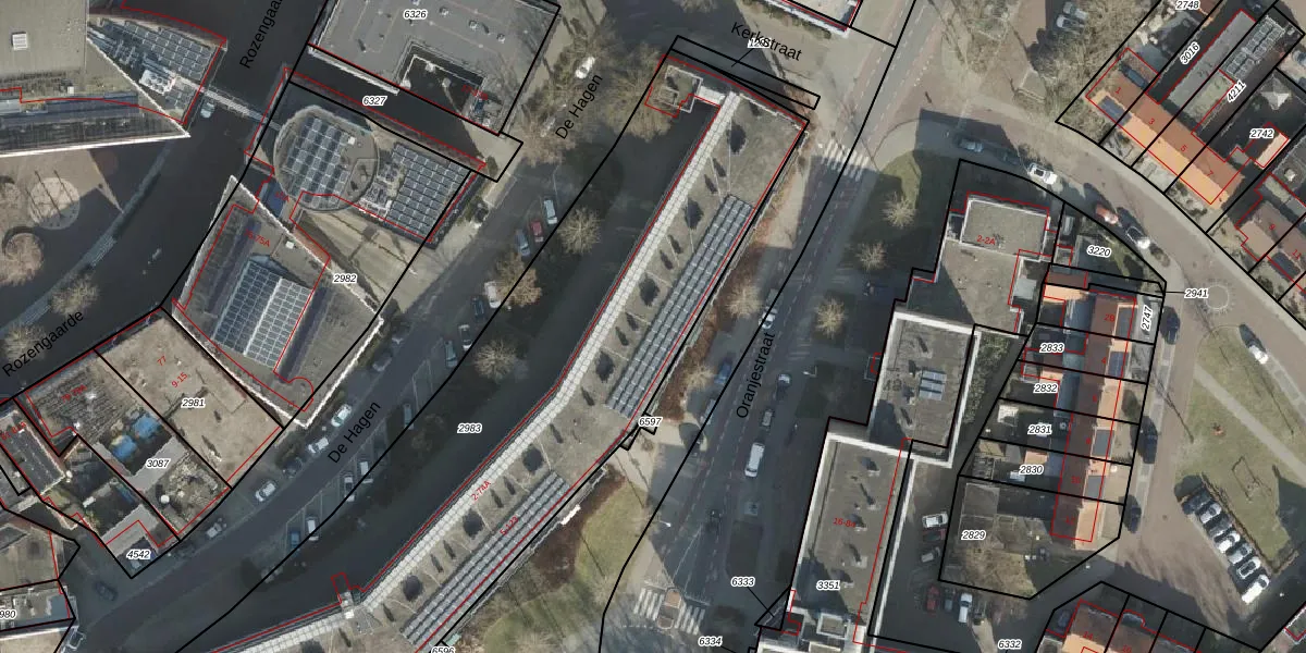 Het perceel waarop Oranjestraat 97 staat heeft een oppervlakte van 3245 m². Dit is een zeer groot perceel. De perceeloppervlakte wordt geregistreerd door het Kadaster. Gedetailleerde informatie over de maten van dit perceel kunt u vinden in het rapport Kadastrale kaart met maatvoering van Oranjestraat 97.