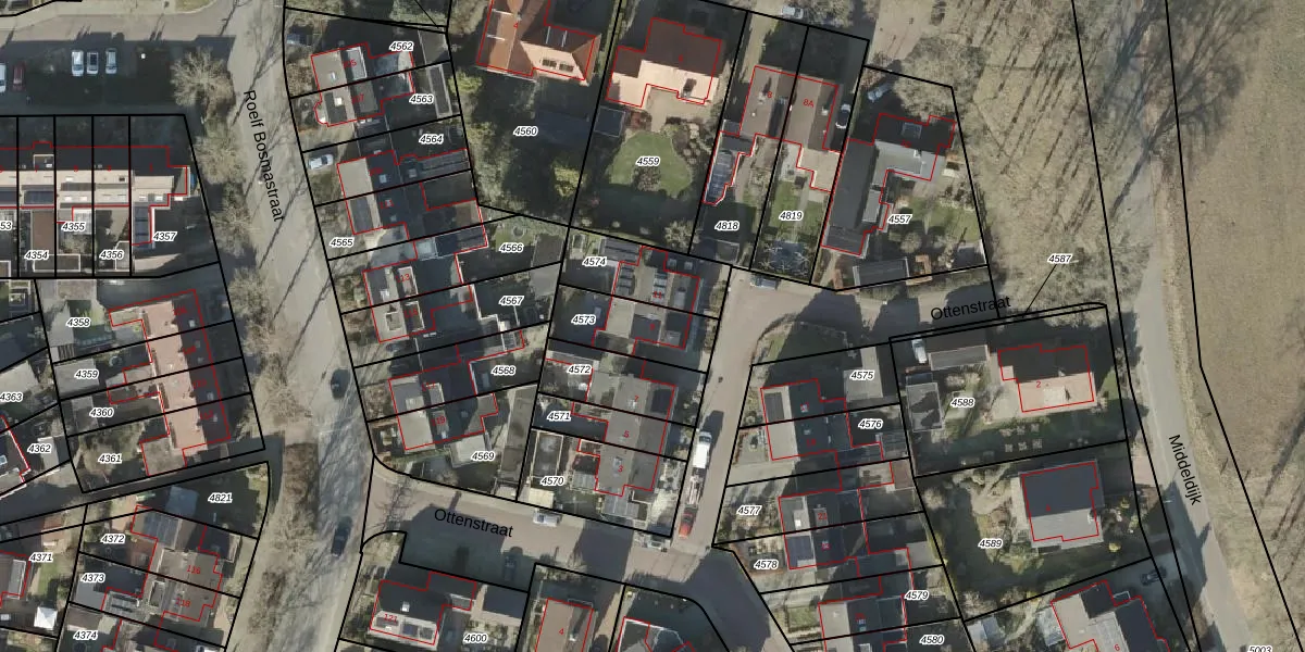 Het perceel waarop Ottenstraat 9 staat heeft een oppervlakte van 213 m². Dit is een middelgroot perceel. De perceeloppervlakte wordt geregistreerd door het Kadaster. Gedetailleerde informatie over de maten van dit perceel kunt u vinden in het rapport Kadastrale kaart met maatvoering van Ottenstraat 9.