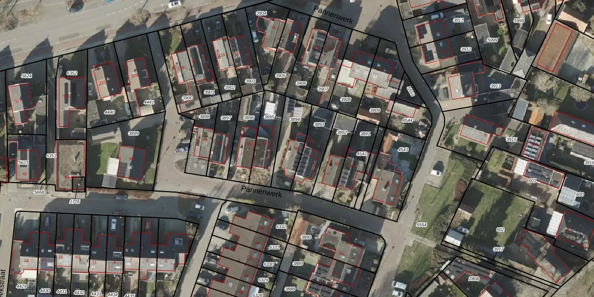 Het perceel waarop Pannenwerk 36 staat heeft een oppervlakte van 258 m². Dit is een middelgroot perceel. De perceeloppervlakte wordt geregistreerd door het Kadaster. Gedetailleerde informatie over de maten van dit perceel kunt u vinden in het rapport Kadastrale kaart met maatvoering van Pannenwerk 36.