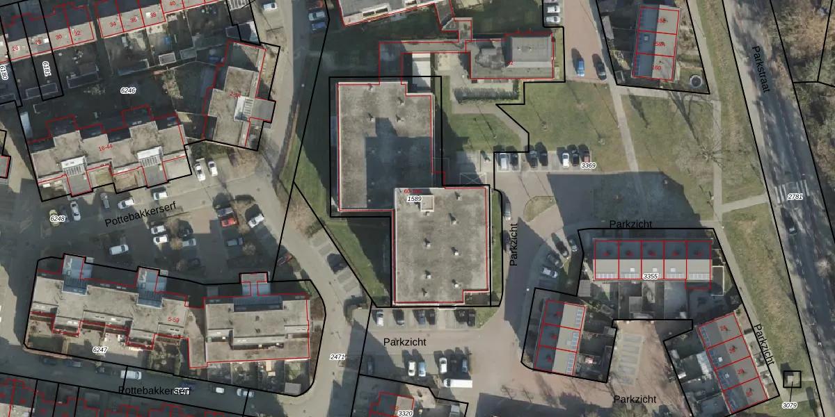 Het perceel waarop Parkzicht 116 staat heeft een oppervlakte van 1500 m². Dit is een zeer groot perceel. De perceeloppervlakte wordt geregistreerd door het Kadaster. Gedetailleerde informatie over de maten van dit perceel kunt u vinden in het rapport Kadastrale kaart met maatvoering van Parkzicht 116.