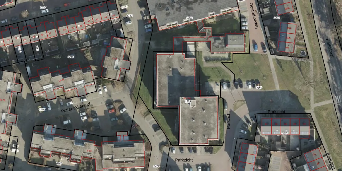 Het perceel waarop Parkzicht 68 staat heeft een oppervlakte van 1500 m². Dit is een zeer groot perceel. De perceeloppervlakte wordt geregistreerd door het Kadaster. Gedetailleerde informatie over de maten van dit perceel kunt u vinden in het rapport Kadastrale kaart met maatvoering van Parkzicht 68.