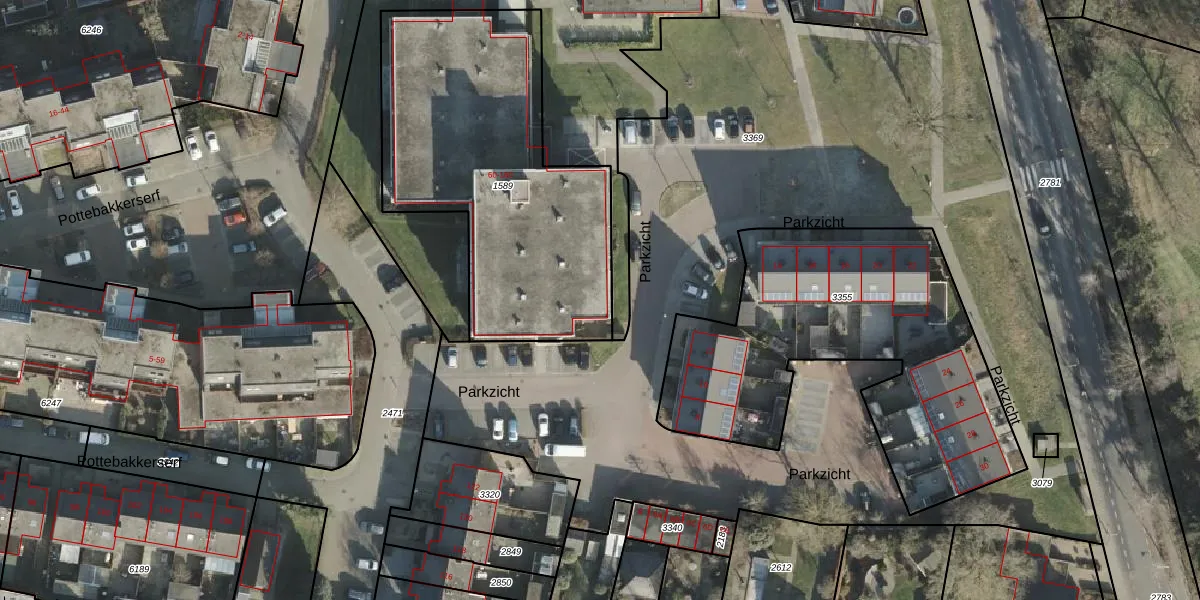 Het perceel waarop Parkzicht 84 staat heeft een oppervlakte van 1500 m². Dit is een zeer groot perceel. De perceeloppervlakte wordt geregistreerd door het Kadaster. Gedetailleerde informatie over de maten van dit perceel kunt u vinden in het rapport Kadastrale kaart met maatvoering van Parkzicht 84.
