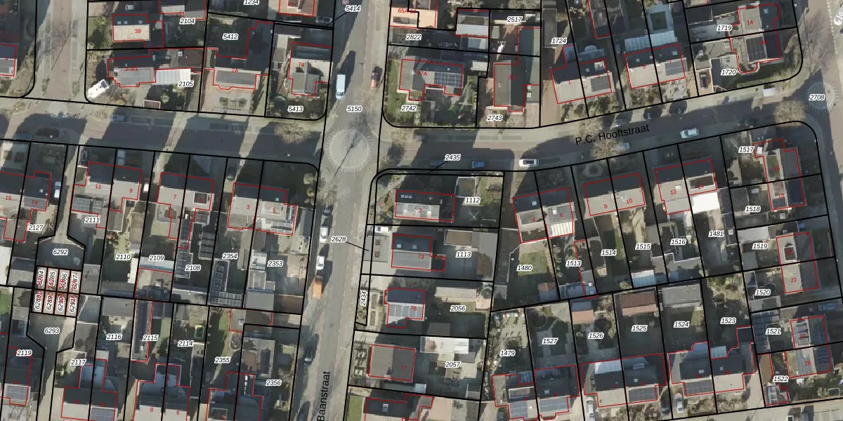Het perceel waarop P.C. Hooftstraat 2 staat heeft een oppervlakte van 364 m². Dit is een groot perceel. De perceeloppervlakte wordt geregistreerd door het Kadaster. Gedetailleerde informatie over de maten van dit perceel kunt u vinden in het rapport Kadastrale kaart met maatvoering van P.C. Hooftstraat 2.