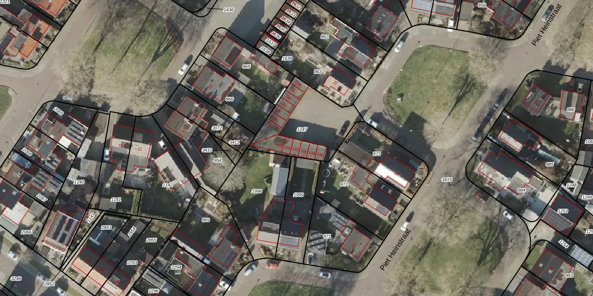 Het perceel waarop Piet Heinstraat 19-D staat heeft een oppervlakte van 628 m². Dit is een groot perceel. De perceeloppervlakte wordt geregistreerd door het Kadaster. Gedetailleerde informatie over de maten van dit perceel kunt u vinden in het rapport Kadastrale kaart met maatvoering van Piet Heinstraat 19-D.