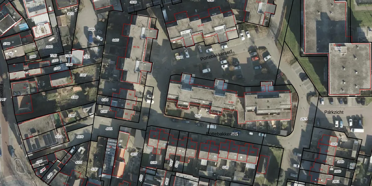 Pottebakkerserf 33 is gelegen op kadastraal perceel RSN01F6247. Deze kadastrale aanduiding is uniek en wordt gebruikt door het Kadaster om eigendomsrechten en andere zakelijke rechten vast te leggen. Het perceel maakt onderdeel uit van de kadastrale gemeente Rijssen.