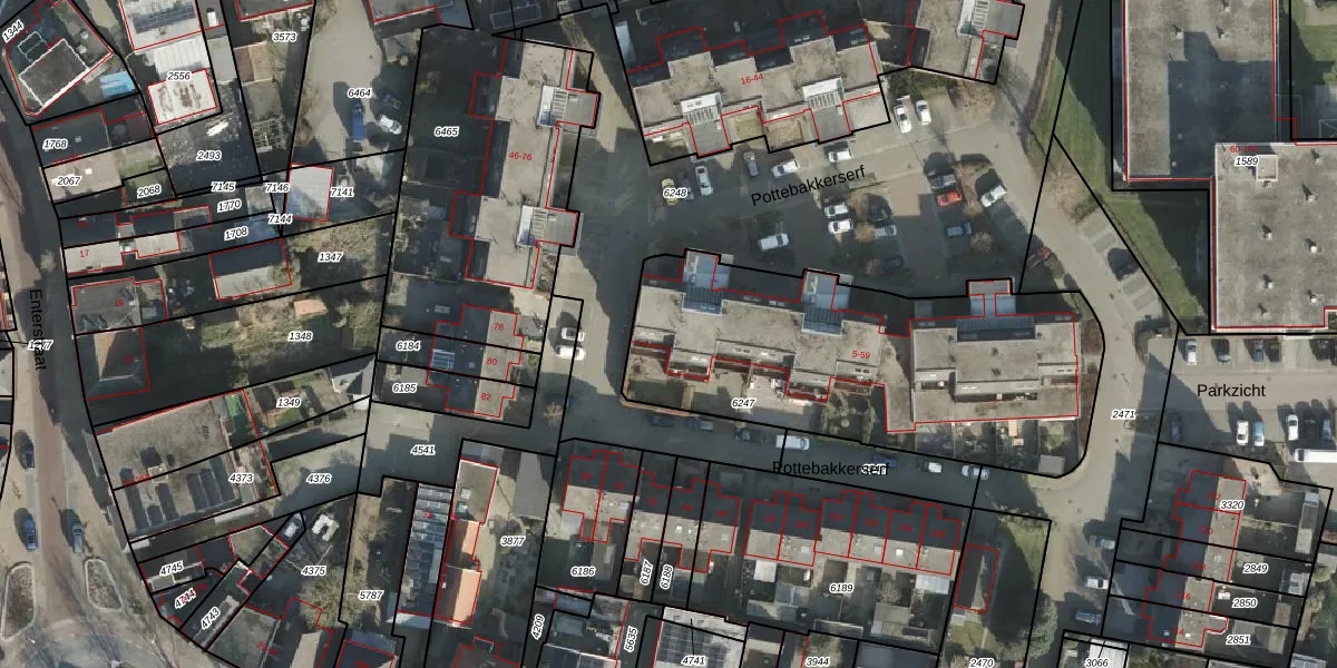 Het perceel waarop Pottebakkerserf 41 staat heeft een oppervlakte van 1680 m². Dit is een zeer groot perceel. De perceeloppervlakte wordt geregistreerd door het Kadaster. Gedetailleerde informatie over de maten van dit perceel kunt u vinden in het rapport Kadastrale kaart met maatvoering van Pottebakkerserf 41.