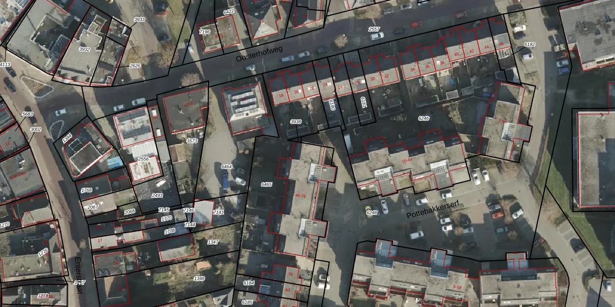 Het perceel waarop Pottebakkerserf 48 staat heeft een oppervlakte van 1550 m². Dit is een zeer groot perceel. De perceeloppervlakte wordt geregistreerd door het Kadaster. Gedetailleerde informatie over de maten van dit perceel kunt u vinden in het rapport Kadastrale kaart met maatvoering van Pottebakkerserf 48.