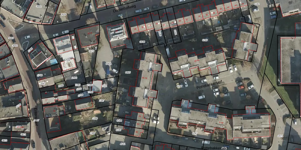 Het perceel waarop Pottebakkerserf 60 staat heeft een oppervlakte van 1550 m². Dit is een zeer groot perceel. De perceeloppervlakte wordt geregistreerd door het Kadaster. Gedetailleerde informatie over de maten van dit perceel kunt u vinden in het rapport Kadastrale kaart met maatvoering van Pottebakkerserf 60.