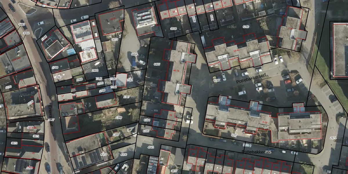 Pottebakkerserf 66 is gelegen op kadastraal perceel RSN01F6465. Deze kadastrale aanduiding is uniek en wordt gebruikt door het Kadaster om eigendomsrechten en andere zakelijke rechten vast te leggen. Het perceel maakt onderdeel uit van de kadastrale gemeente Rijssen.