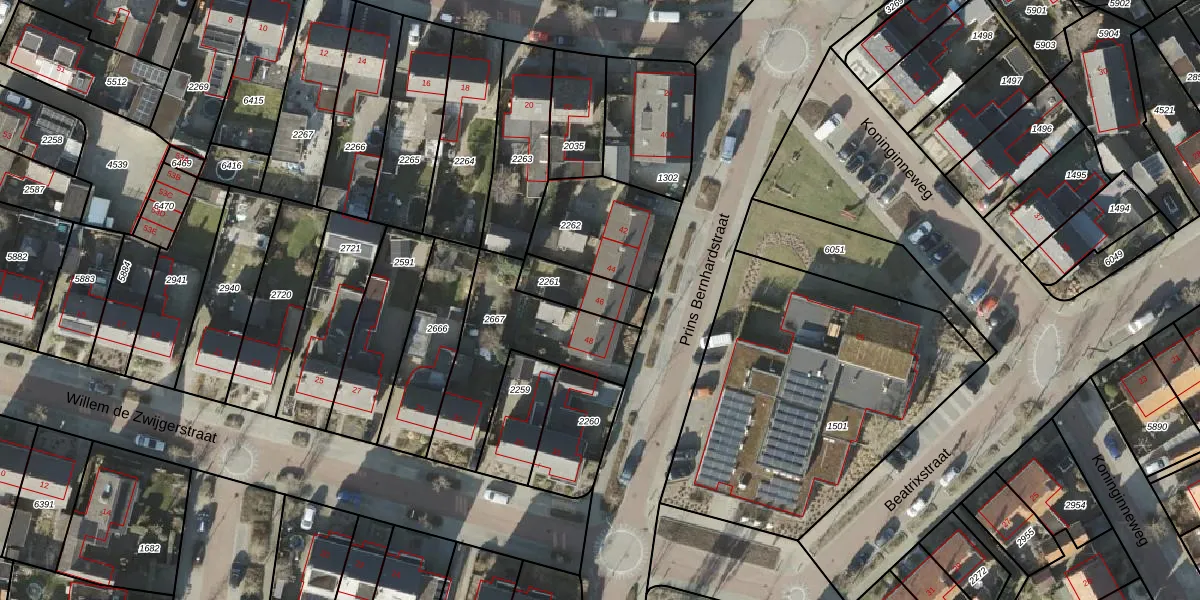 Gebruik de zoekbalk of klik op een perceel voor informatie over de adressen binnen dit perceel.