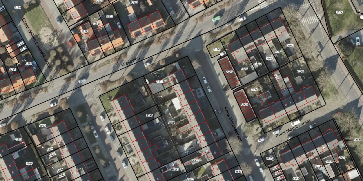 Het perceel waarop Prins Mauritsstraat 16 staat heeft een oppervlakte van 2195 m². Dit is een zeer groot perceel. De perceeloppervlakte wordt geregistreerd door het Kadaster. Gedetailleerde informatie over de maten van dit perceel kunt u vinden in het rapport Kadastrale kaart met maatvoering van Prins Mauritsstraat 16.