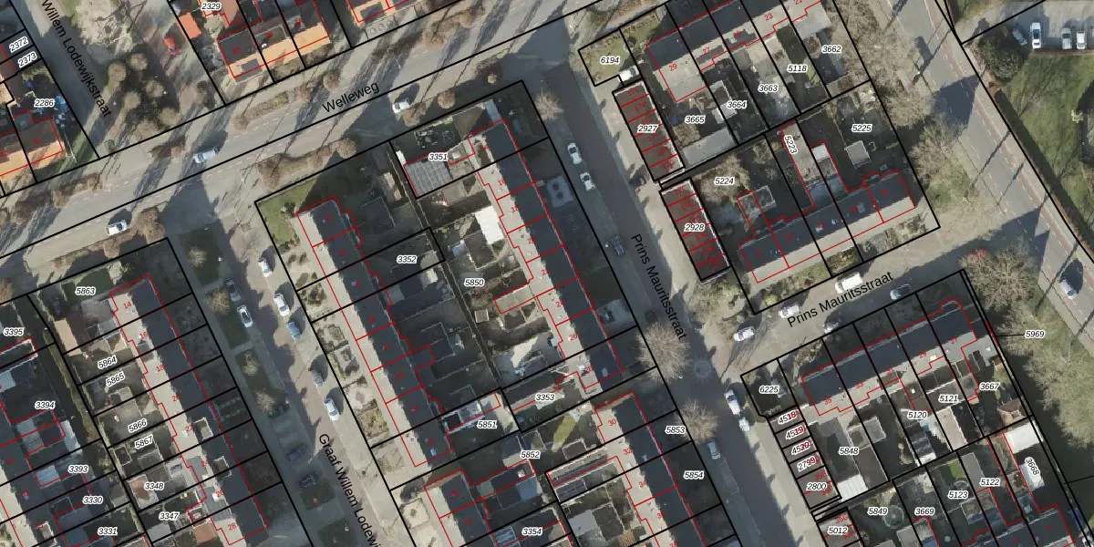 Het perceel waarop Prins Mauritsstraat 22 staat heeft een oppervlakte van 2195 m². Dit is een zeer groot perceel. De perceeloppervlakte wordt geregistreerd door het Kadaster. Gedetailleerde informatie over de maten van dit perceel kunt u vinden in het rapport Kadastrale kaart met maatvoering van Prins Mauritsstraat 22.