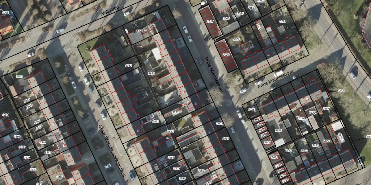 Het perceel waarop Prins Mauritsstraat 26 staat heeft een oppervlakte van 2195 m². Dit is een zeer groot perceel. De perceeloppervlakte wordt geregistreerd door het Kadaster. Gedetailleerde informatie over de maten van dit perceel kunt u vinden in het rapport Kadastrale kaart met maatvoering van Prins Mauritsstraat 26.