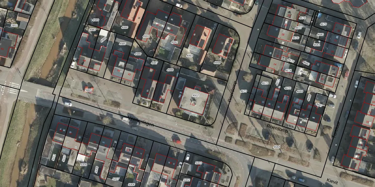 Het perceel waarop Roerdomp 11 staat heeft een oppervlakte van 676 m². Dit is een groot perceel. De perceeloppervlakte wordt geregistreerd door het Kadaster. Gedetailleerde informatie over de maten van dit perceel kunt u vinden in het rapport Kadastrale kaart met maatvoering van Roerdomp 11.