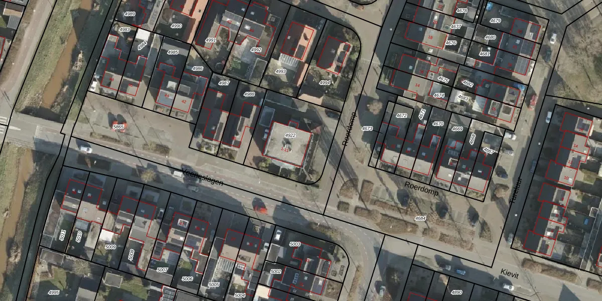 Het perceel waarop Roerdomp 3 staat heeft een oppervlakte van 676 m². Dit is een groot perceel. De perceeloppervlakte wordt geregistreerd door het Kadaster. Gedetailleerde informatie over de maten van dit perceel kunt u vinden in het rapport Kadastrale kaart met maatvoering van Roerdomp 3.