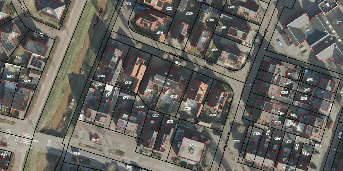 Gebruik de zoekbalk of klik op een perceel voor informatie over de adressen binnen dit perceel.