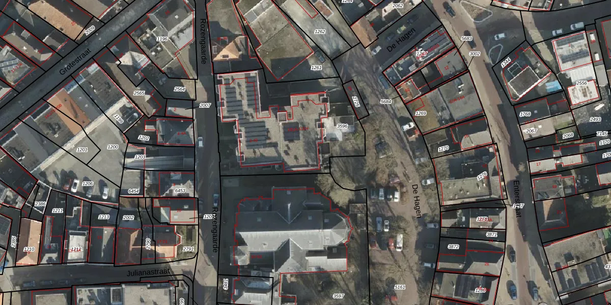 Het perceel waarop Rozengaarde 49 staat heeft een oppervlakte van 1386 m². Dit is een zeer groot perceel. De perceeloppervlakte wordt geregistreerd door het Kadaster. Gedetailleerde informatie over de maten van dit perceel kunt u vinden in het rapport Kadastrale kaart met maatvoering van Rozengaarde 49.