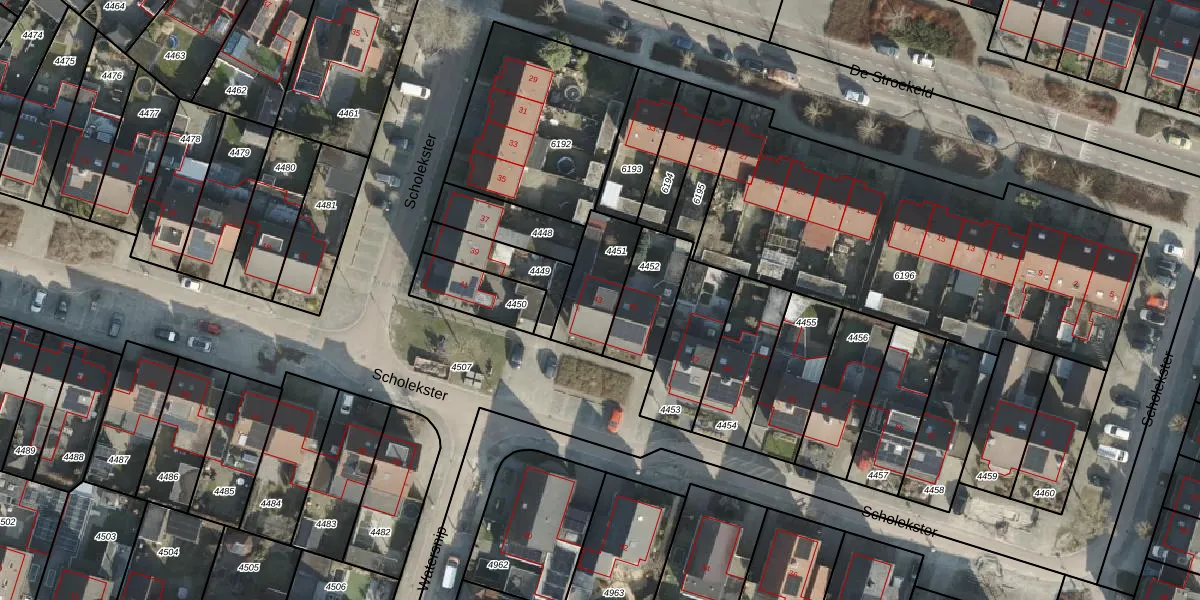 Gebruik de zoekbalk of klik op een perceel voor informatie over de adressen binnen dit perceel.