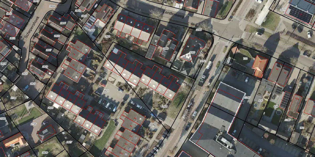 Het perceel waarop Schoolstraat 62 staat heeft een oppervlakte van 1400 m². Dit is een zeer groot perceel. De perceeloppervlakte wordt geregistreerd door het Kadaster. Gedetailleerde informatie over de maten van dit perceel kunt u vinden in het rapport Kadastrale kaart met maatvoering van Schoolstraat 62.